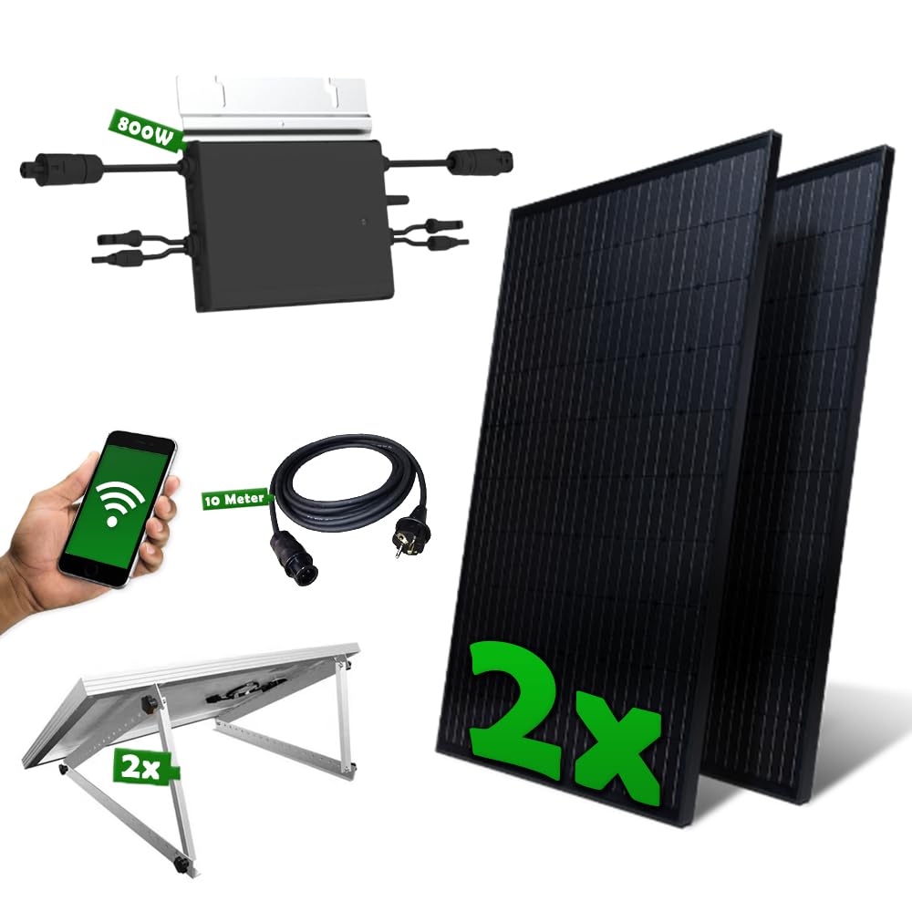 ✅ Lieferumfang: GreenSurfer 800W Balkonkraftwerk Komplett-Set. Enthalten sind 2x Premium-Solarmodule mit jeweils 410Wp, 2x hochwertige Flachdach-Halterungen, ein Wechselrichter der Marke HOYMILES mit einer Ausgangsleistung von 800 Watt, ein !=m langes Steckdosenkabel.
